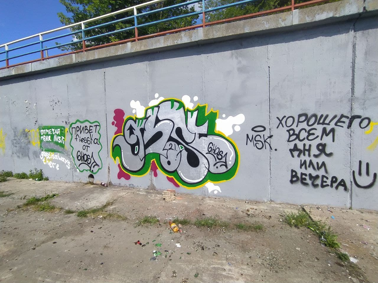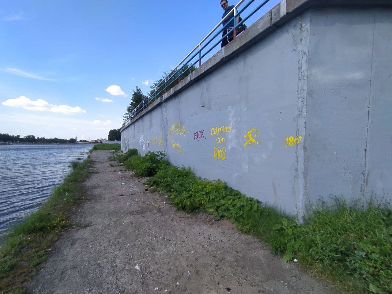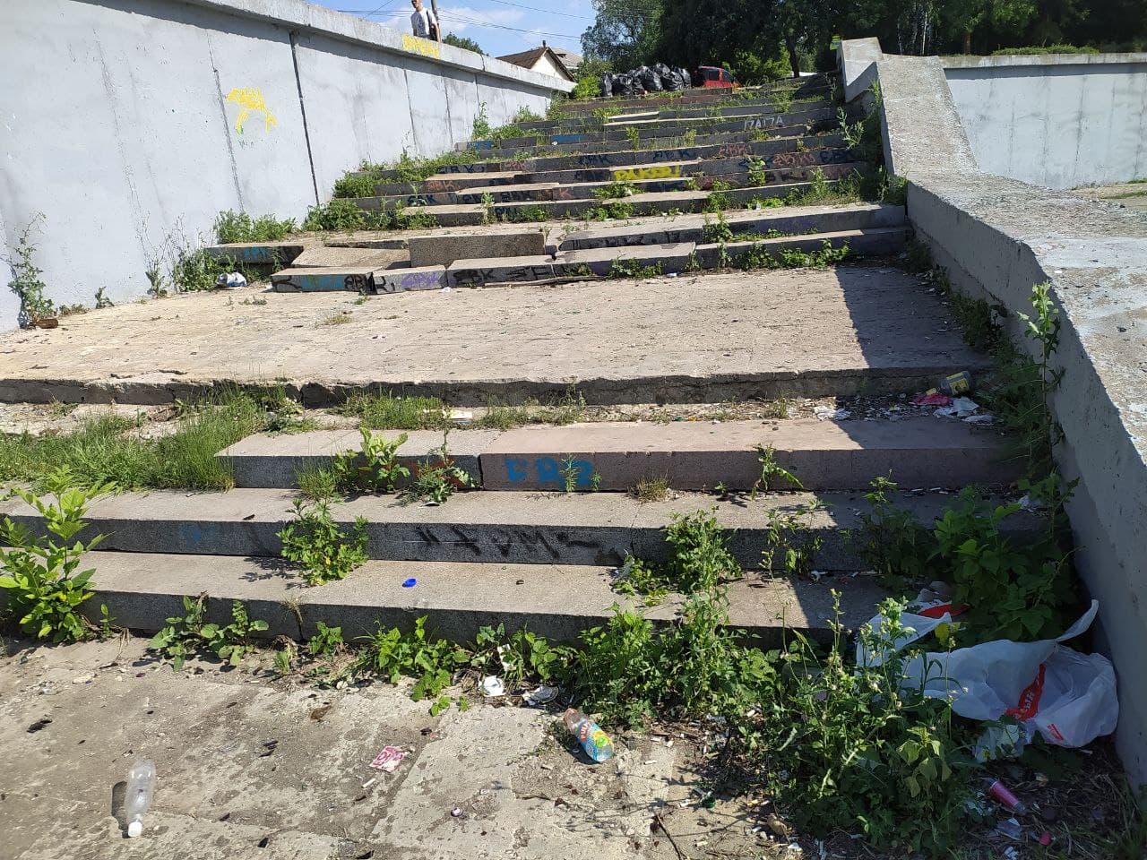 Однако благоустройство - это постоянный уход, а не разовые акции. Год спустя все вернулось на свои места. Подпорную стенку вновь украсили бессмысленные письмена диких пензенцев и их же «наскальные рисунки».