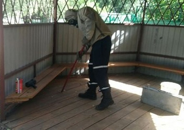 Работник дошкольного учреждения сообщил, что на веранде, предназначенной для прогулок воспитанников, поселились осы. Насекомые построили в этой зоне гнездо.