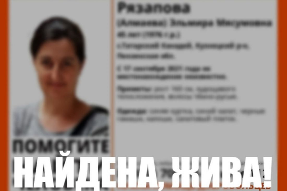 Эльмира Рязапова (Алмаева), проживающая в селе Татарский Канадей Кузнецкого района, пропала 17 сентября. С того момента у родственников не было информации о ее местонахождении.