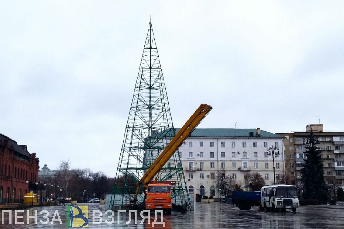 Каркас главной пензенской елки на площади Ленина почти смонтирован