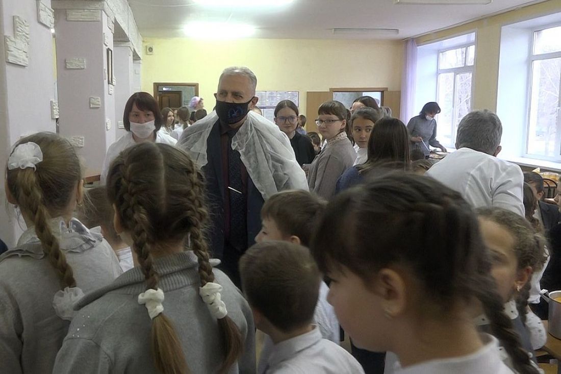 Мэр Златогорский попросил оценить учеников кузнецкой школы качество питания в столовой