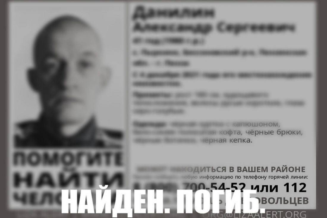 Информация о том, что мужчина найден мертвым, появилась в паблике в прошлую пятницу, 17 декабря. «Найден, погиб. Соболезнования родным и близким», - говорится в комментариях к ориентировке.