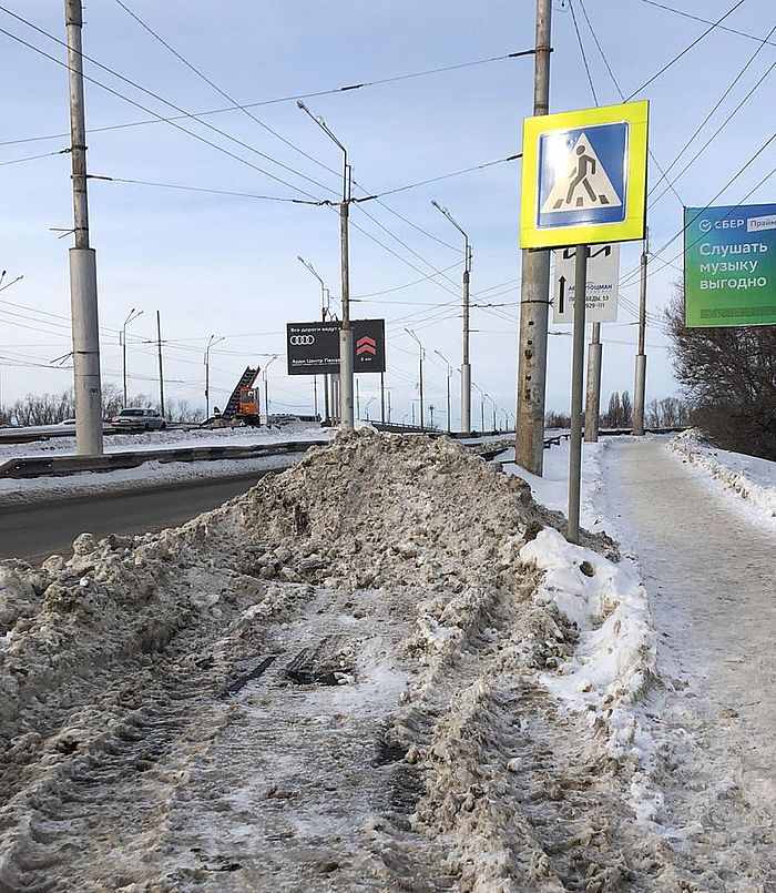 На проспекте Победы в Пензе пешеходный переход завалило убранным с дороги снегом