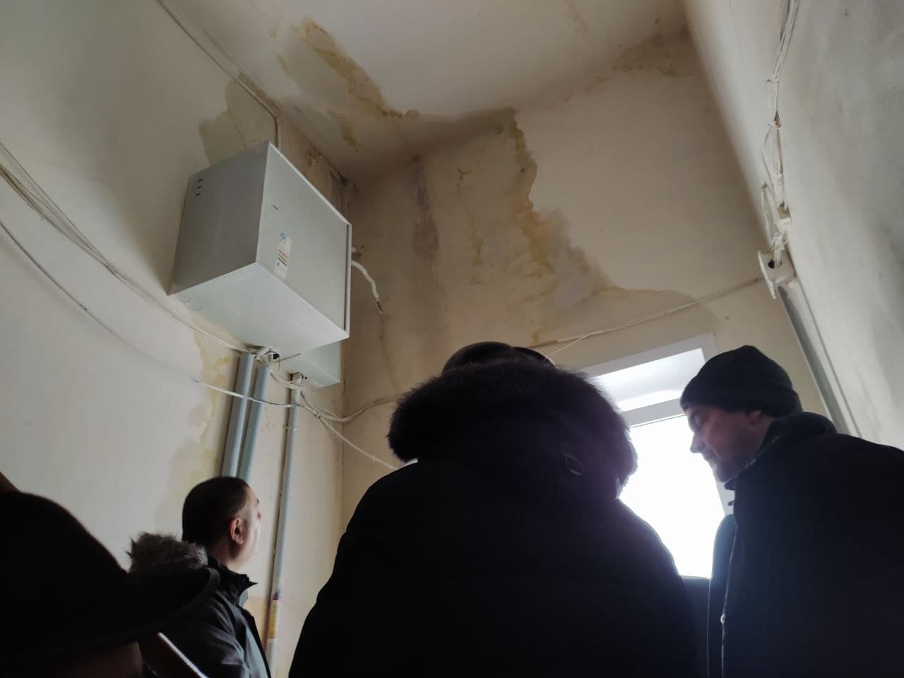 В понедельник к дому, который терпит бедствие, приехали заместитель председателя Гордумы Пензы Юрий Зиновьев, глава администрации Железнодорожного района Пензы Андрей Шульгин. У подъезда, который наиболее пострадал от протекающей крыши, они встретились с руководством управляющей компании и жильцами.
