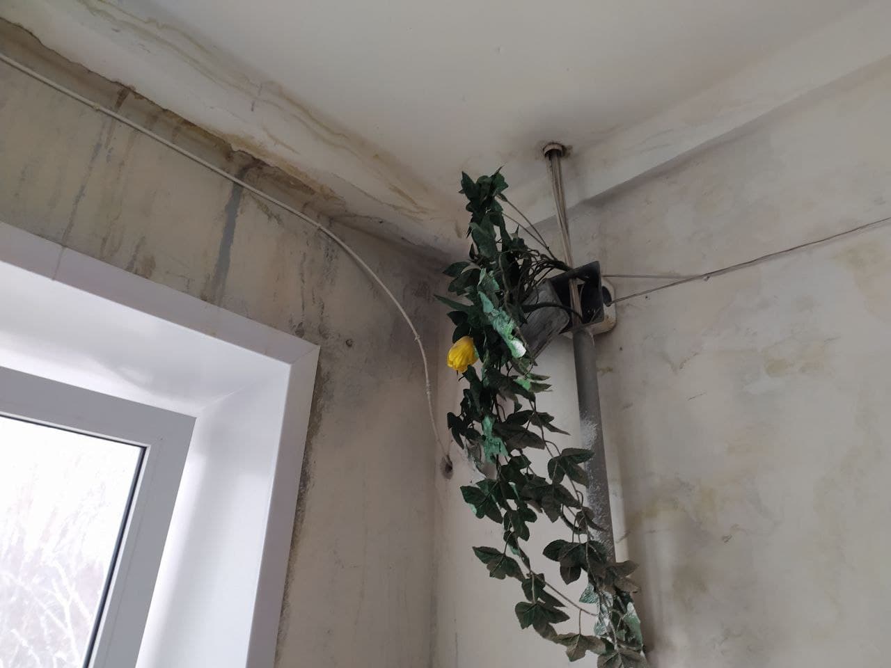Внутри, со стороны подъезда, следы протечек видны на третьем этаже. А в квартирах, по словам жильцов, пострадали потолки, обои и мебель.