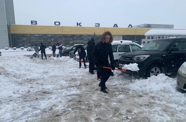 Учащиеся филиала Самарского государственного университета путей сообщения города Пензы помогли очистить от снега территорию Привокзальной площади.