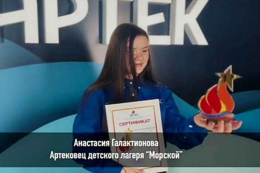 «Звезда Артека» вручается лучшим представителям каждого лагеря за высокие личные достижения, успешное участие в программах, уважение сверстников и артековского сообщества. В этом году в лагере «Морской» Международного детского Центра лучшей была признана Анастасия Галактионова из Нижнего Ломова.