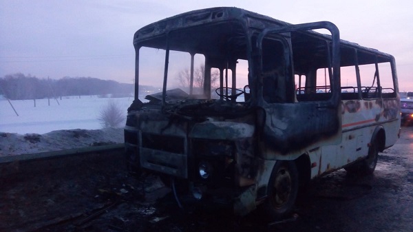 Транспортное средство вспыхнуло на улице Максима Горького в районном центре. В результате случившегося рейсовый автобус «ПАЗ», следовавший по маршруту «город Сердобск – село Кирово», полностью сгорел.
