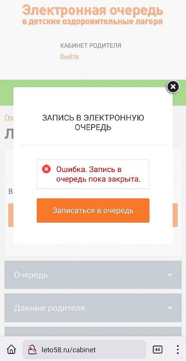 В системе записи в электронную очередь на сайте leto58.ru, где родители оставляют заявки на путевки для детей в летние загородные лагеря, наблюдаются сбои. Об этом порталу «Пенза-Взгляд» сообщают взволнованные горожане.