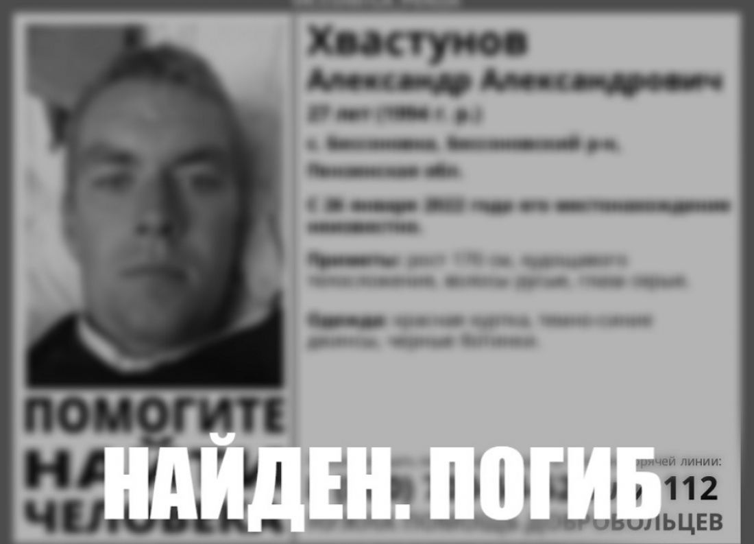 Местонахождение Александра Хвастунова было неизвестно с 26 января этого года. Его поисками занимались близкие, полиция, добровольцы.