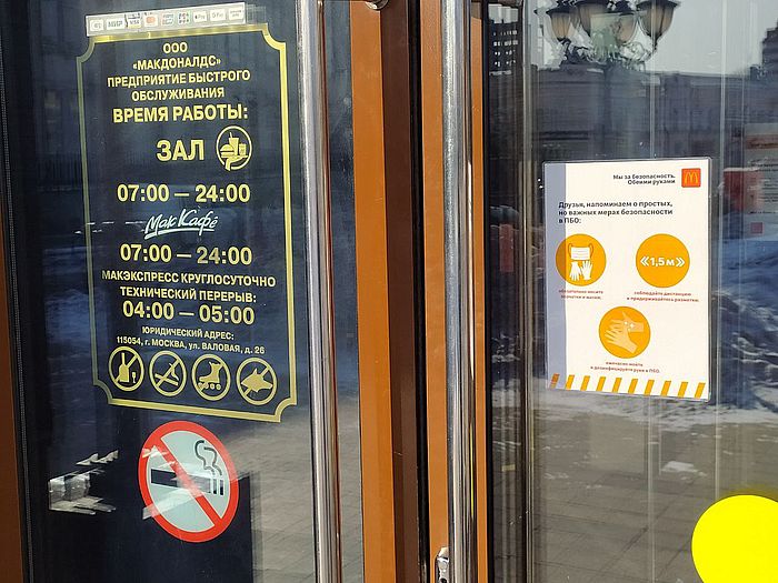 Он побывал на Московской улице, где расположена одна из точек американской сети. Работает окошко выдачи заказов «МакЭкспресс», не заперт вход в основной зал ресторана.