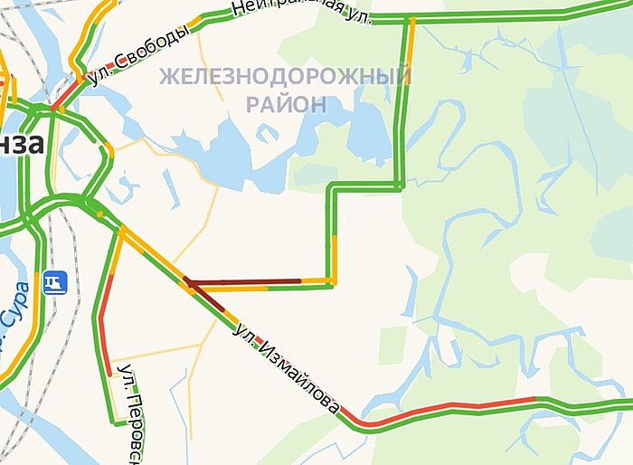 Серьезность положения подтверждает сервис «Яндекс Пробки», на котором значительная часть улицы Измайлова окрашена в проблемный красный цвет. К примеру, чтобы добраться из Ахун до центра Пензы, у жителей района уходит около часа.