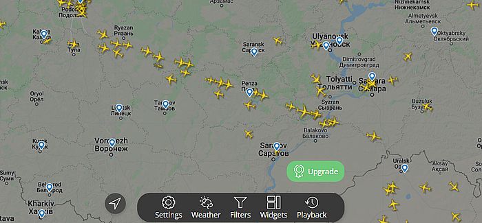 Популярный ресурс flightradar24.com также ярко иллюстрирует значительную активность перемещений воздушных судов в небе над городом (по состоянию на 11:30 18 марта).