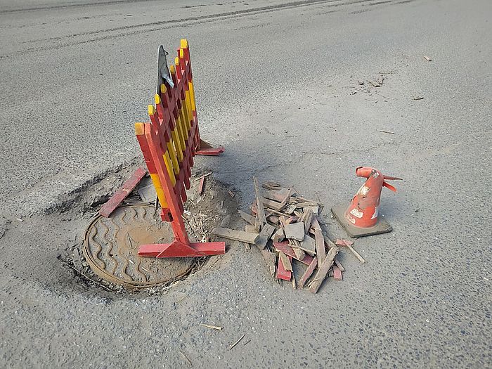 Оказавшийся в этом районе журналист портала «Пенза-Взгляд» обнаружил, что причина установки заборчиков - в проседании асфальта около канализационного люка.