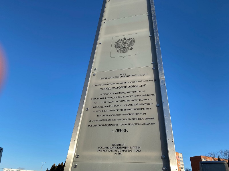 27 декабря 2021 года состоялась торжественная церемония открытия памятной стелы в честь присвоения Пензе почетного звания «Город трудовой доблести». Дата открытия композиции была выбрана не случайно – в этот день исполнилось 80 лет завершению строительства оборонительного рубежа Пензы. Стелу, посвященную трудовому подвигу пензенцев, установили в парке «40 лет Победы» в Арбекове – это место выбрали горожане путем голосования на сайте администрации.