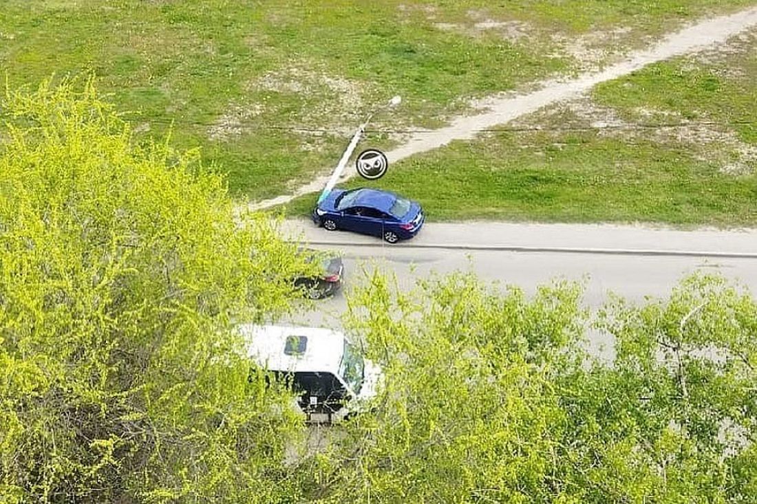 На улице Воронова в Пензе легковой автомобиль снес бетонный столб