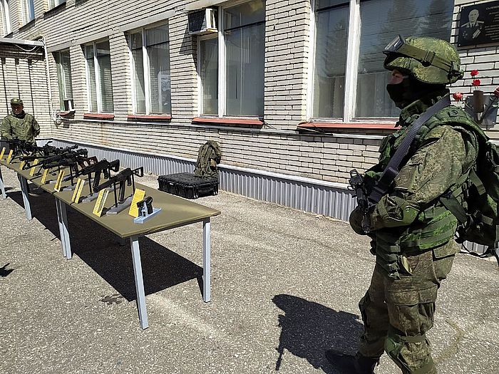 Перед зданием сборного пункта были выставлены образцы вооружения.