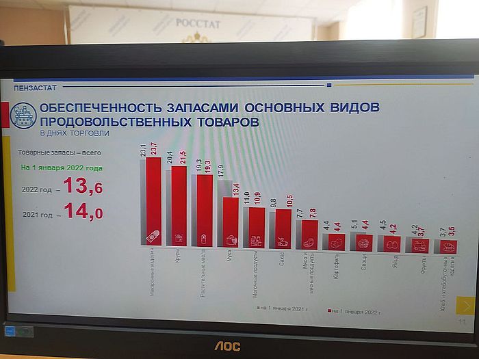 Самые большие запасы, по состоянию на 1 января 2022 года, созданы в регионе по макаронным изделиям (23,7 дня), крупам (21,5 дня), растительным маслам (19,3 дня). Относительно малые запасы имеются по яйцам (4,2 дня), фруктам (3,7 дня), хлебу и хлебобулочным изделиям (3,5 дня).
