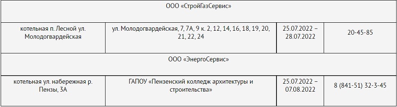 Стал известен график отключения горячей воды летом в Пензе