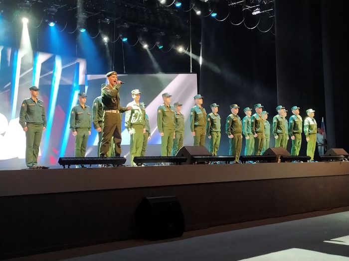 Песни, славящие Россию, исполнялись и в самом зале, создавая соответствующее случаю настроение.