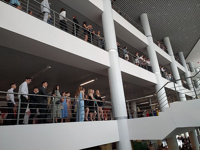 Пофотографировавшись и зарядившись энергией музыки, выпускники прошли в зал, где должна была состояться официальная часть мероприятия.