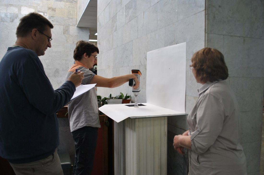 Доцент-искусствовед Андрей Дроздов и кандидат химических наук Максим Андреев занимаются изучением русского художественного стекла с целью атрибуции - установления авторства анонимного произведения литературы или искусства, времени и места его создания. Сотрудники МГУ знакомятся с избранными предметами русского художественного стекла 18-19 века из фондов никольского музея.
