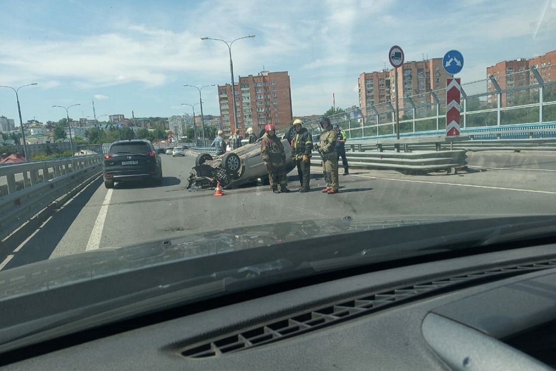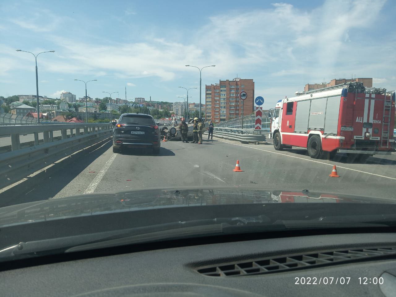 Автомобиль перевернулся на крышу в результате ДТП на мосту Капашина