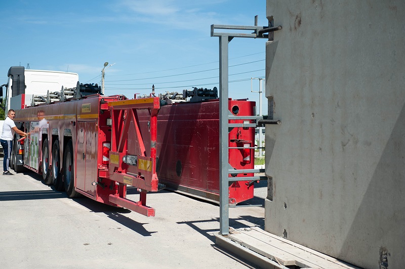 Благодаря четкой логистике домокомплекты и ЖБИ оперативно доставляются на строительную площадку собственным автотранспортом. Погрузка осуществляется инлоудером за 5 минут без применения кранов - спецтранспорт автоматически загружает изделие на складе завода и разгружает его на стройплощадке.