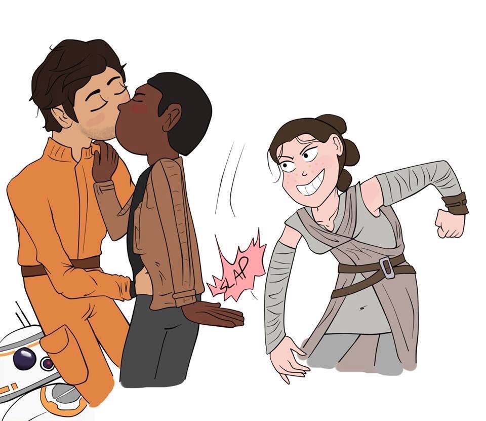 Режиссёр Райан Джонсон восьмого эпизода фантастической саги «Звёздные войны» намекнул на возможные гей-отношения между героями фильма. Режиссер опубликовал в своём «твиттере» картинку с целующимися главными героями седьмого фильма — пилотом По Дэмероном и бывшим штурмовиком Финном, позади которых стоит радостная Рей.