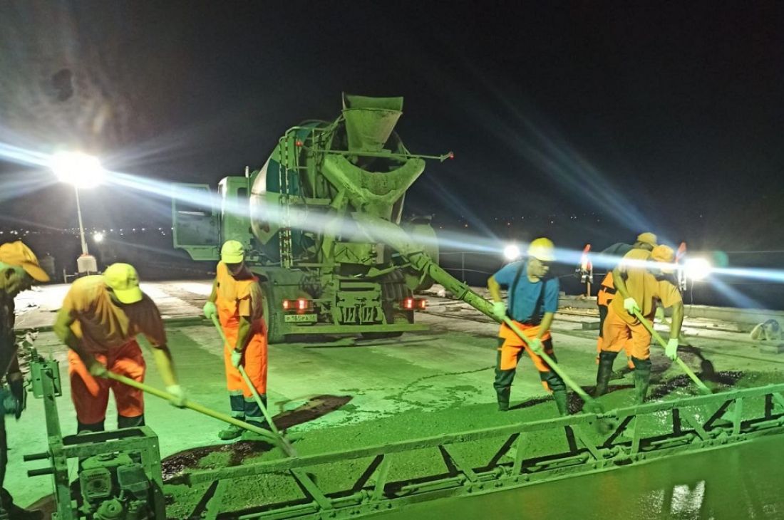 Строительно-монтажные работы на объекте ведутся круглосуточно. Минувшей ночью подрядчик провел бетонирование выравнивающего слоя на 6 и 7 пролетах эстакады. Также в настоящее время укрепляются откосы насыпи, бетонируются межбалочные швы и прокладывается ливневая канализация.