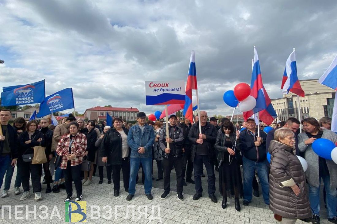 Сегодня в Пензе был организован митинг-концерт под названием «Своих не бросаем». Его устроители призвали желающих выразить солидарность с жителями ДНР, ЛНР, Херсонской и Запорожской областей по проведению референдумов.
