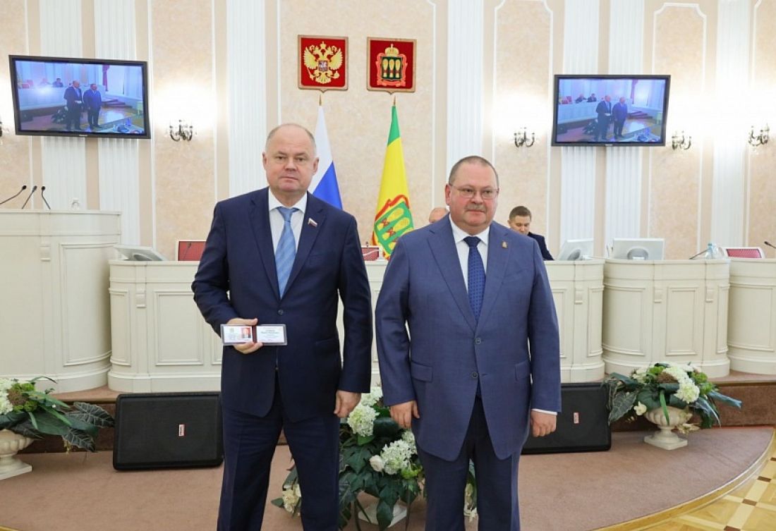Губернатор Пензенской области Олег Мельниченко и спикер регионального парламента Вадим Супиков вручили удостоверения и нагрудные знаки депутатам Законодательного Собрания седьмого созыва.