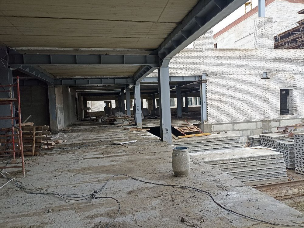 Как пояснил министр образования Алексей Комаров, ускорение темпов строительства достигнуто за счет того, что на объекте стало работать еще больше техники, еще больше людей. В настоящее время объект готов более чем на 50%.