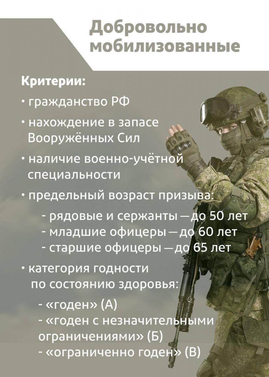 Эксперты портала «Объясняем.рф» назвали несколько критериев для отбора граждан в ряды добровольно мобилизованных.
