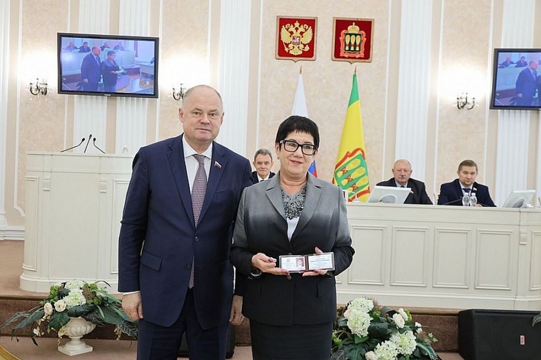 Перед началом очередной сессии регионального Законодательного собрания состоялась церемония вручения удостоверения депутата, которое из рук спикера Вадима Супикова получила Нелли Шумилина.