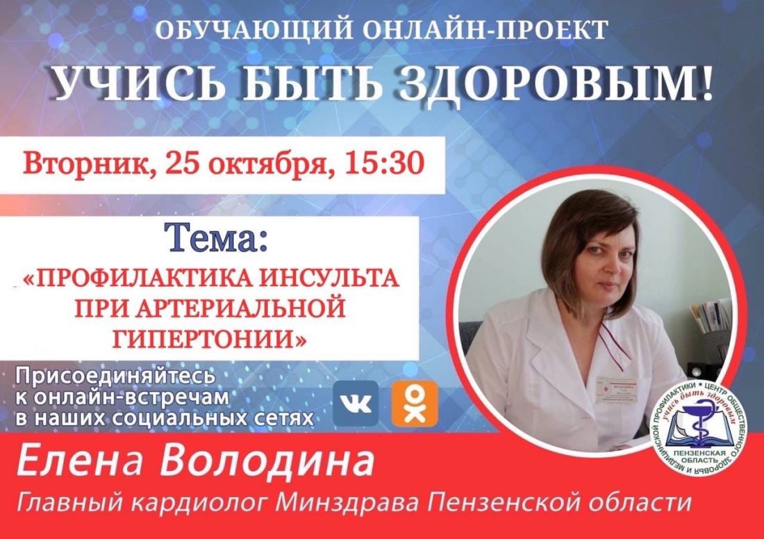 В рамках акции завтра, 25 октября, запланирован прямой эфир на тему «Профилактика инсульта при артериальной гипертонии».