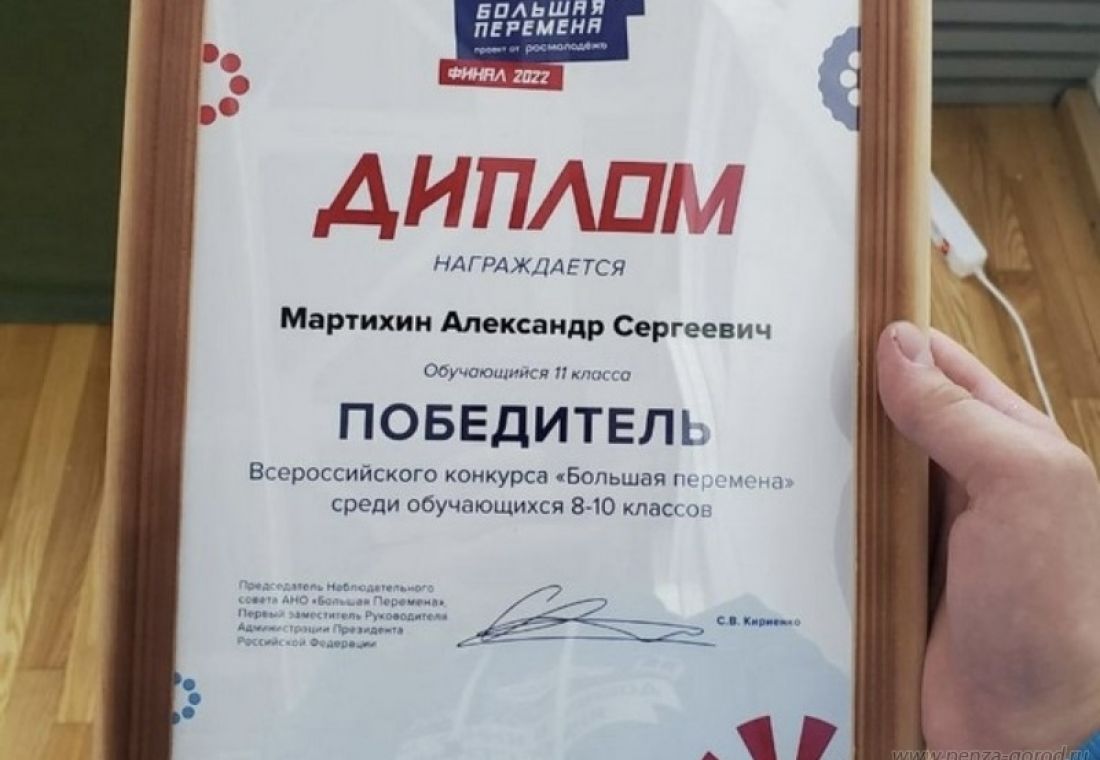 Пензенский школьник стал победителем всероссийского конкурса «Большая перемена».