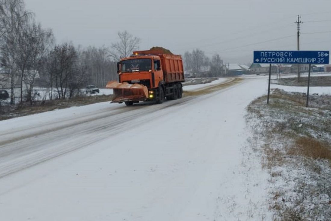 Дороги Пензенской области обрабатывают противогололедными материалами