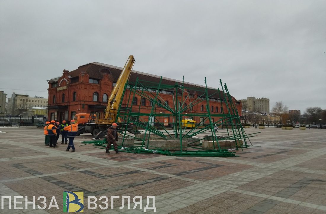 В Пензе продолжается монтаж каркаса новогодней елки