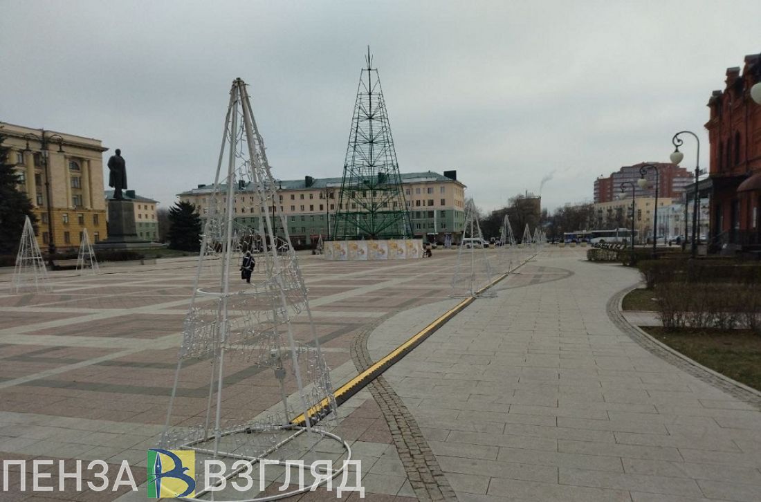 Пензу начали заранее украшать и готовить к праздничным мероприятиям. Так, на площади Ленина продолжается установка главной елки.