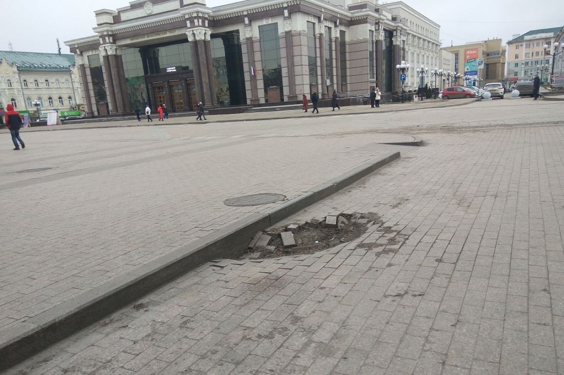 Пензенец поинтересовался, когда заделают провал на ул. Московской у драмтеатра