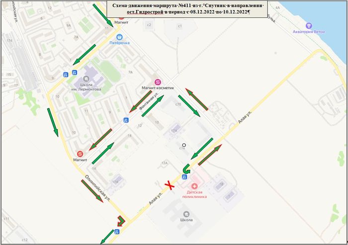 По данным пресс-службы министерства, с 8 по 10 декабря включительно при движении в направлении «г. Спутник – ост. Гидрострой» автобусы будут осуществлять разворот около остановочного пункта «Детская поликлиника» и следовать по маршруту: «ул. Алая – ул. Светлая – ул. Фонтанная – ул. Олимпийская – ул. Алая – и далее по маршруту движения».