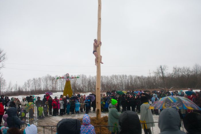 Самые крепкие и смелые парни попробовали свои силы в соревнованиях по гиревому спорту, а также поучаствовали в традиционном для праздника Масленицы «взятии столба». Праздник по традиции закончился сжиганием чучела, что символизирует уход зимы и ожидание наступления весенней погоды.