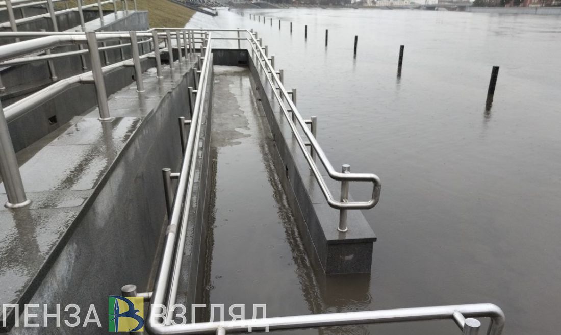 Судя по присланным в редакцию портала «Пенза-Взгляд» фотографиям, под водой уже оказалась нижняя ступенька лестницы.