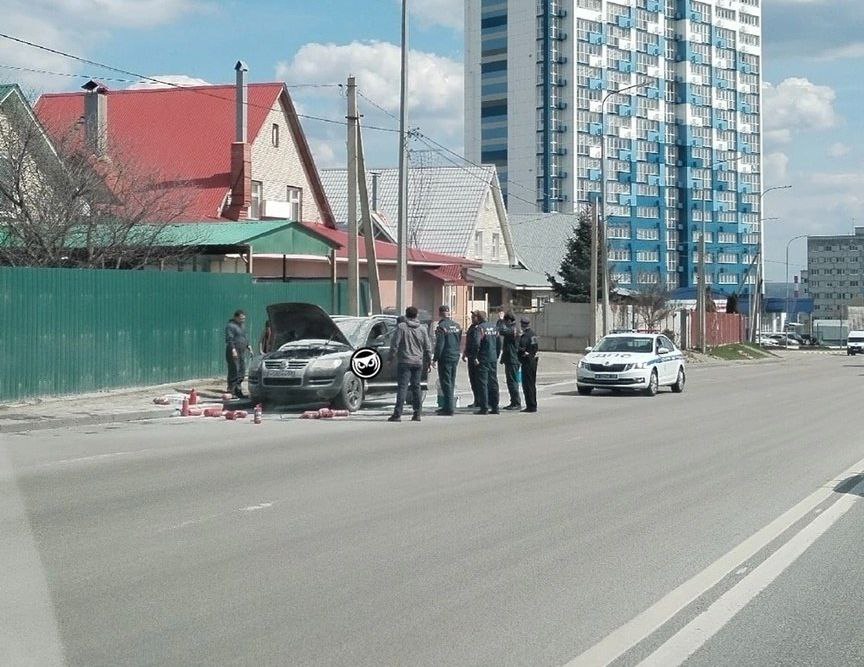 Видео в telegram-канал выложили очевидцы. На кадрах запечатлен автомобиль марки «Volkswagen Touareg». Водитель вышел из задымленного транспорта и открыл капот машины.
