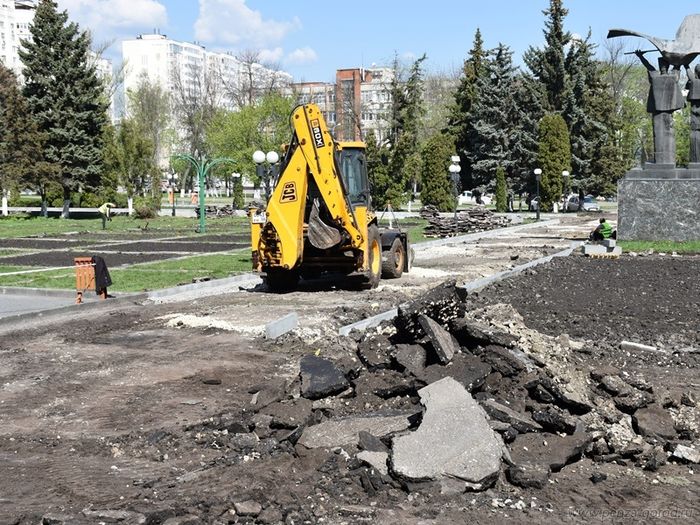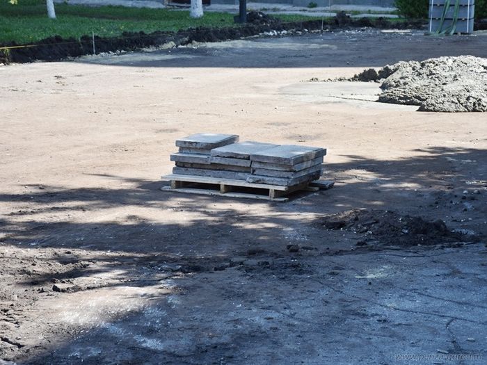 Судя по опубликованным на сайте мэрии фото, рабочие сняли старый асфальт на дорожках, ведущих к администрации. Также демонтирована часть ступеней на лестнице к входу в здание.