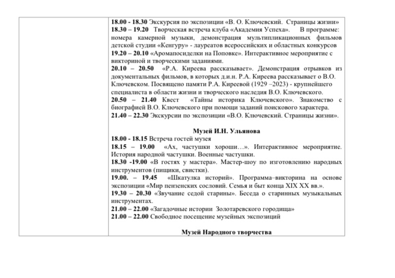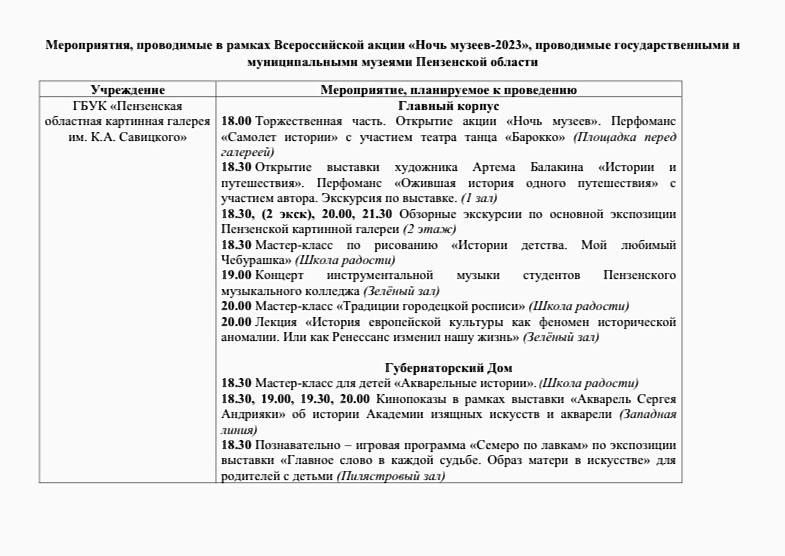 Появилась программа «Ночи музеев» в Пензенской области (12+)