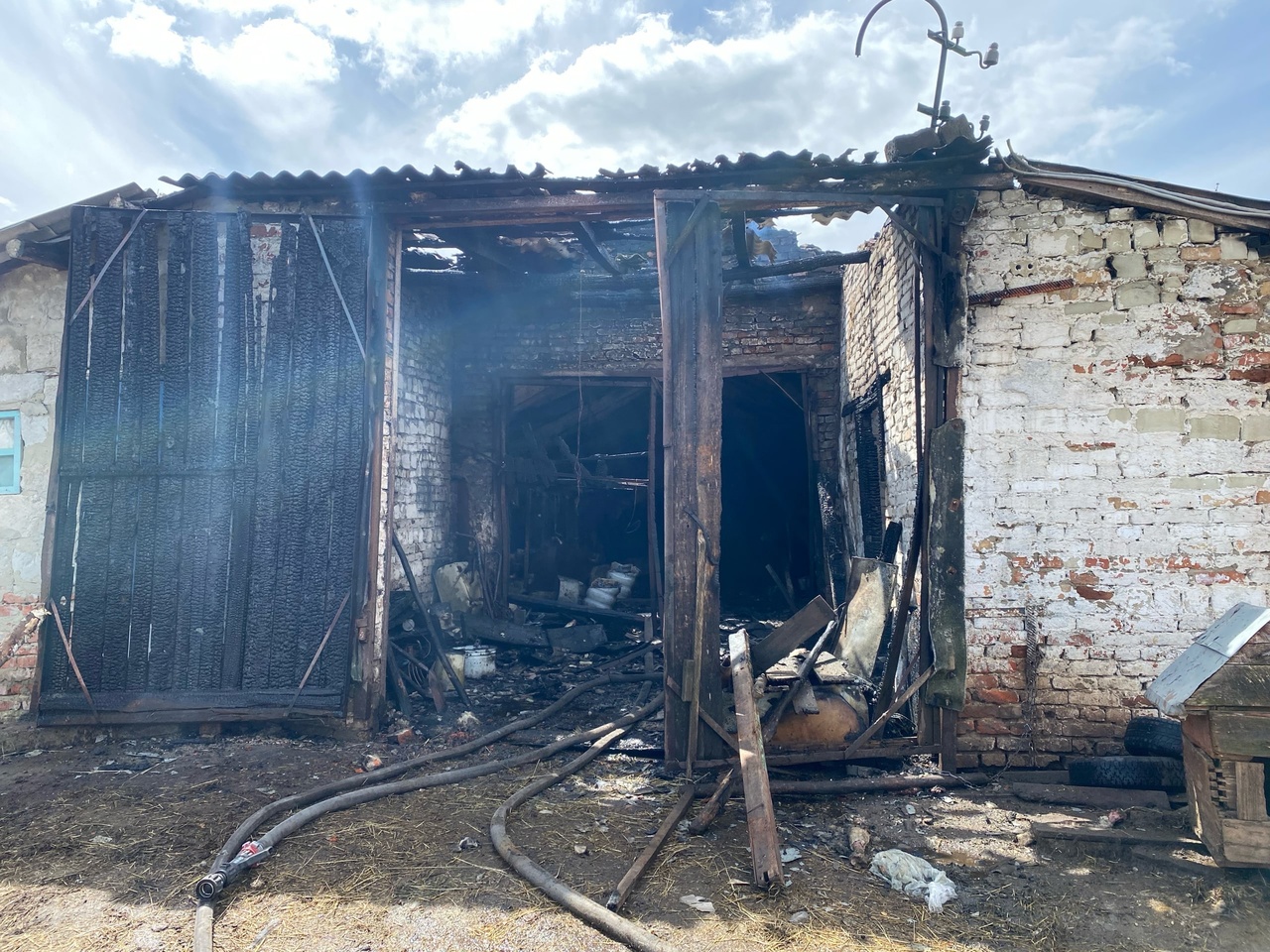 Появились фотографии с места пожара в строении для животных в Каменском районе