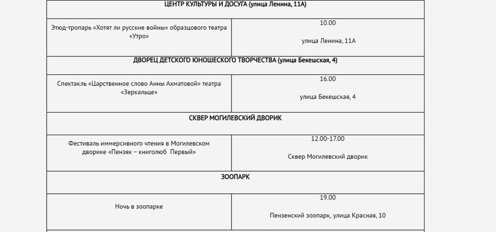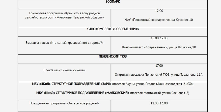 Кроме того, 10 июня жители и гости Пензенской области смогут посетить следующие мероприятия: