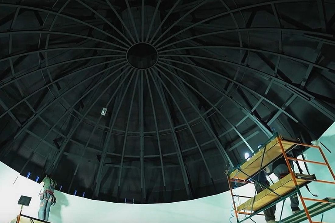 Губернатор Пензенской области Олег Мельниченко сообщил, что в планетарии рабочие завершили монтировать каркас звездного купола и первый ряд экранов, а также поставили звуковую аппаратуру.